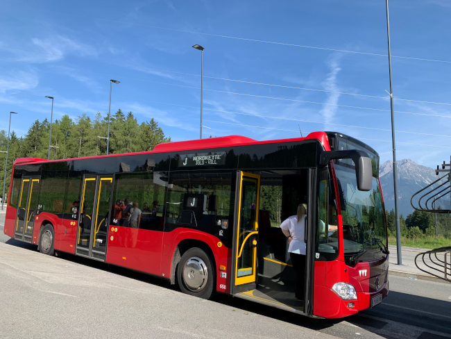 利用したバスのJ線のルートは、インスブルックの街歩きとアルプスの風景を凝縮したような絶景ルートとして知られています。