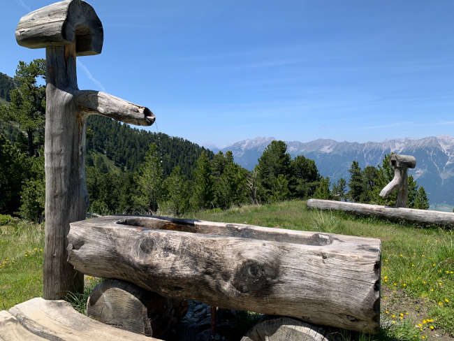 コースの終盤、トゥルフェイン・アルムに近づくと、木で作られた素朴なゲートや水飲み場が現れました。