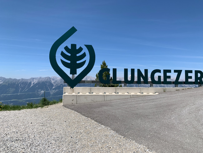 ゴールの目印となる「GLUNGEZER(グルンゲザー)」の大きな看板に到着!